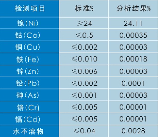 產(chǎn)品介紹:吉恩氯化鎳為無(wú)水物NiCl2.6H2O,是綠色片狀晶體,灼熱時(shí)失去結(jié)晶水而成無(wú)水物。棕色片狀晶體。比重3.55。在973°升華。都有潮解性。易溶于水,水溶液呈酸性。也溶于乙醇和氨水。