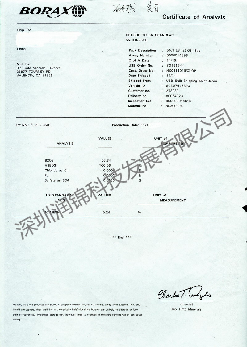作 用:主要用于光亮鍍鎳和化學鎳藥水,用作PH值調節劑、消毒劑、抑菌劑等:用于制取硼酸鹽、硼酸酯、光學玻璃、油漆、顏料、硼酸藥皂、皮革整理劑、印染助劑和醫藥上的消毒劑等。