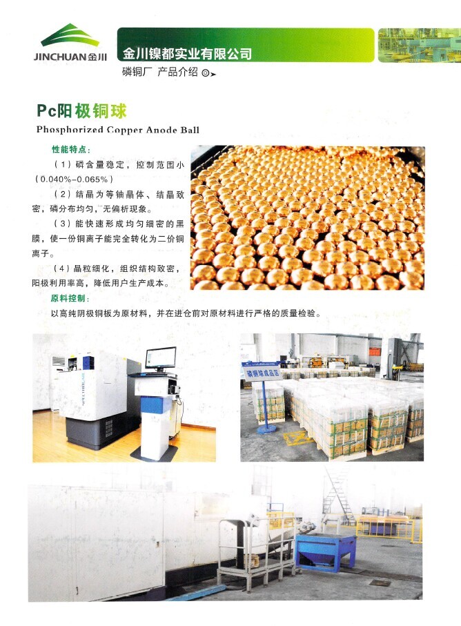 簡介:金川磷銅球,主要用于五金塑膠光亮酸性鍍銅和線路板酸性鍍銅,性價比較高。