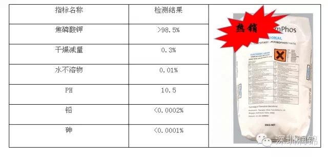 注:天富焦磷酸鉀有兩種包裝(食品級與電鍍級),兩者在焦磷酸鉀純度、雜質含量及使用效果會有不同,請客戶朋友在購買前與業務員咨詢、洽談。謝謝!